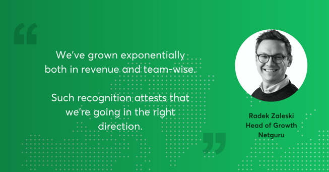 Within the past few years, we’ve worked really hard to get to the place we’re in now. We invest heavily in people and technology and it does pay off. We’ve grown exponentially both in revenue and team-wise. Such recognition attests that we’re going in the right direction. - Radek Zaleski, Head of Growth at Netguru.