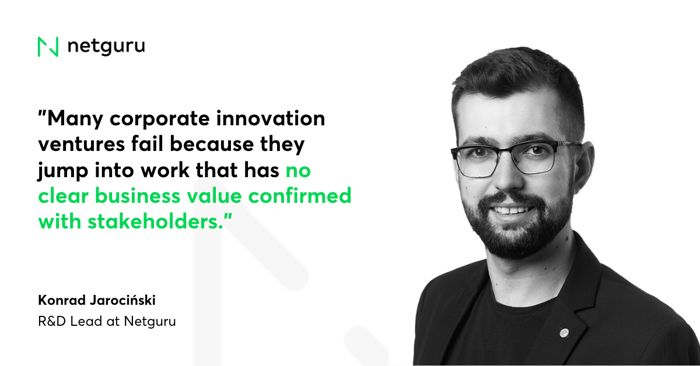 One of the options is to create an internal innovation lab or startup. However, Konrad points out that ”It requires a delicate balance between decoupling it from regular operations and keeping governance that will bring the results back to the core operations of the company.”