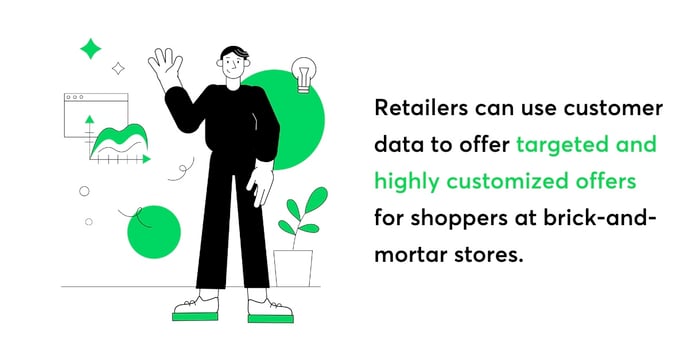 Retailers can use customer data to offer targeted and highly customized offers for shoppers at brick-and-mortar stores, and can do so by tracking behavior across channels to determine when and where customers browse physical stores and ecommerce sites.