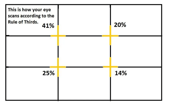 The Rule of Thirds is a compositional principle that has applications in film, photography, painting, and design. The core of this rule is to divide any web page into three equal horizontal and vertical sections. This segmenting will result in intersection points that are naturally appealing to users.
