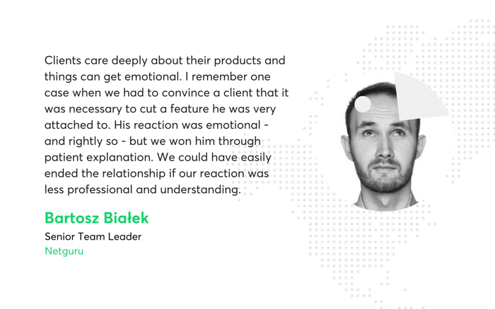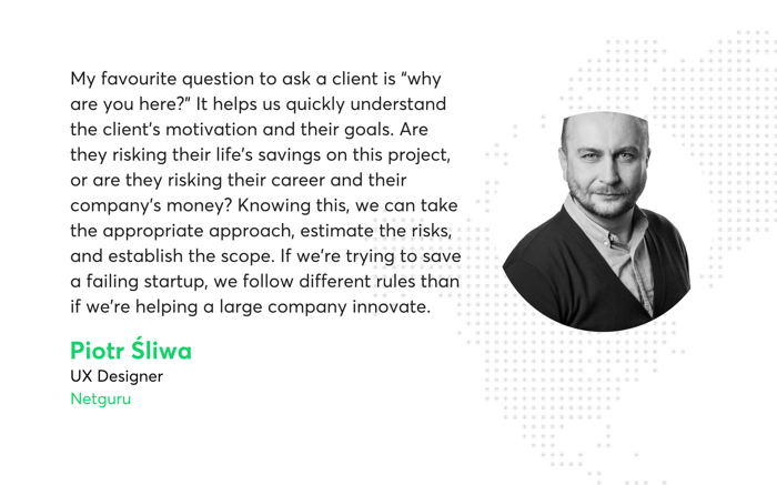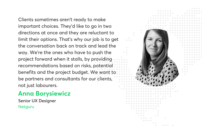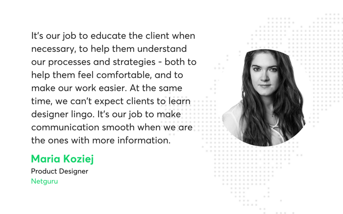 You simply can’t overlook the importance of your ability to understand the client’s vision, communicate on their level, and present your ideas in a way that makes them excited to see them in action. Over the years of working on projects across many wildly different industries, Netguru’s team of product designers has gathered a number of rules to follow to ensure good communication.