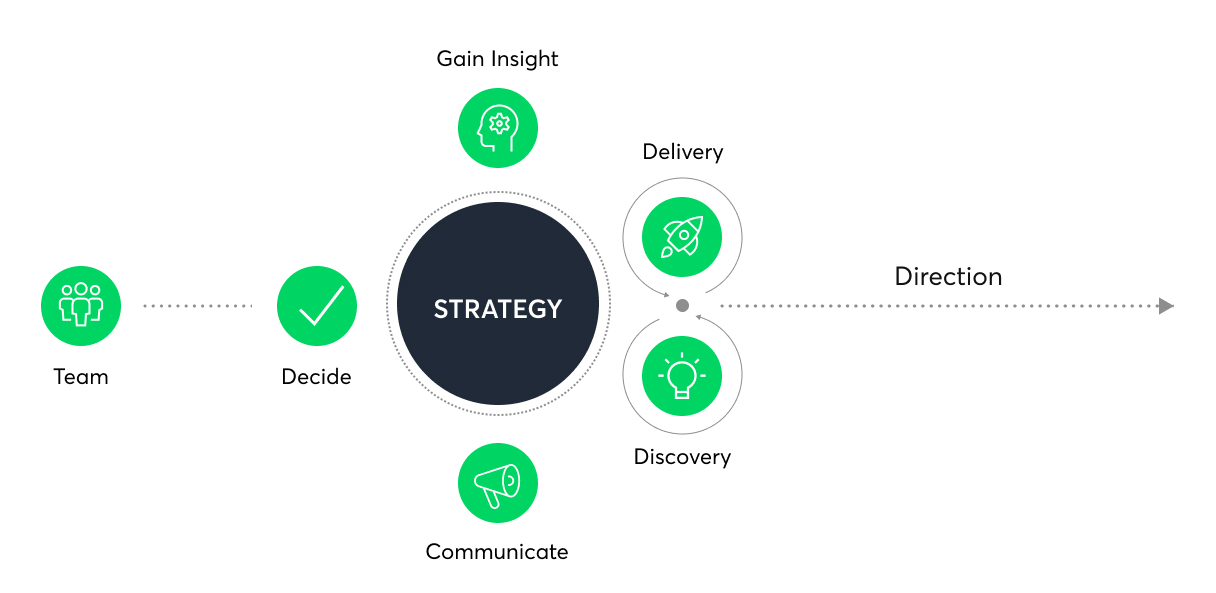 Your decisions are often assumptions that should be tested. That’s why your Product Strategy needs to be an iterative, continuous process. Discovery and delivery play a crucial role in validating the strategy.