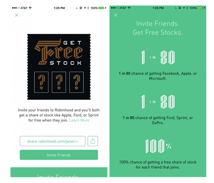 The previously mentioned Robin Hood offers one free share of stock for each new friend who joins the app – the referrer could get a stock worth between $2 and $200.