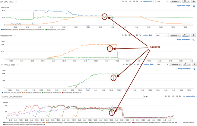 So that's the problem. It looks like the database has crashed under heavy load and that's why we were still receiving timeouts on the application side. In order to handle such traffic peaks, we had to increase database throughput. By increasing the flavor of DB instance, we would increase costs permanently, but since we needed only to handle peaks, we had to find some more scalable solution - and this is where Amazon Aurora comes into the play.