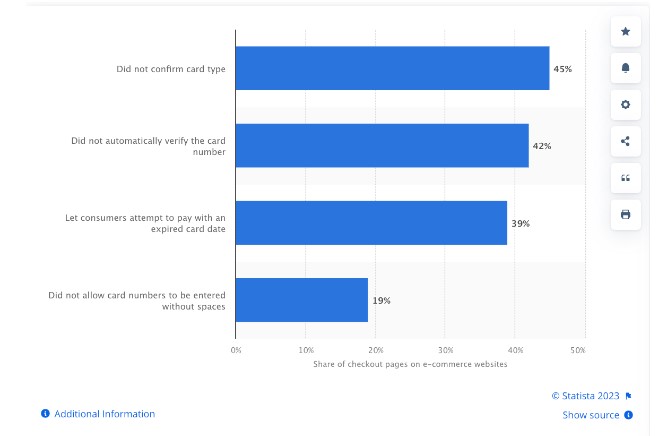 Hindrances such as card confirmation issues (45%), lack of automatic card number verification (42%), and acceptance of expired card details for payment attempts (39%) severely disrupt the customer's journey.
