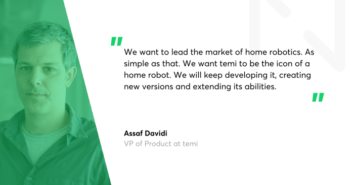 Initial vision? Elderly robotic assistant. The outcome was temi, a personal assistant robot, labelled by the media as Amazon’s Alexa’s equivalent on wheels. All developed from scratch by three teams scattered around the world (Israel, China, and Poland).