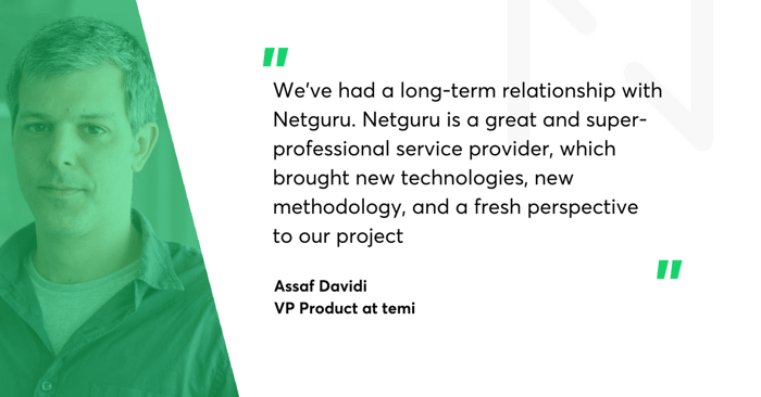 “We’ve had a long-term relationship with Netguru. Netguru is a great and super-professional service provider, which brought new technologies, new methodology, and a fresh perspective to our project” concluded Assaf Davidi, VP Product at temi.
