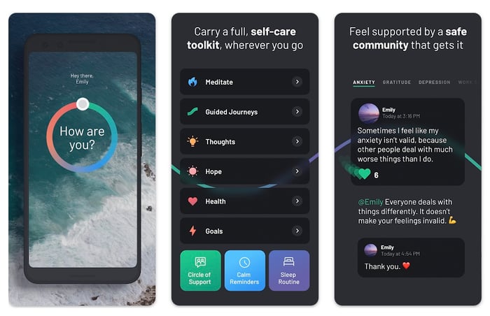 On top of all the features geared towards bettering one’s emotional wellbeing through relieving stressors associated with anxiety, Happify includes a supportive community full of people who are tackling similar issues or going through the same struggles together.