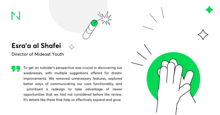 Here is a summary of the benefits of UX review that our client has enjoyed. These metrics helped Raqib activate diverse groups of young people in the civic arena, and bring social change.