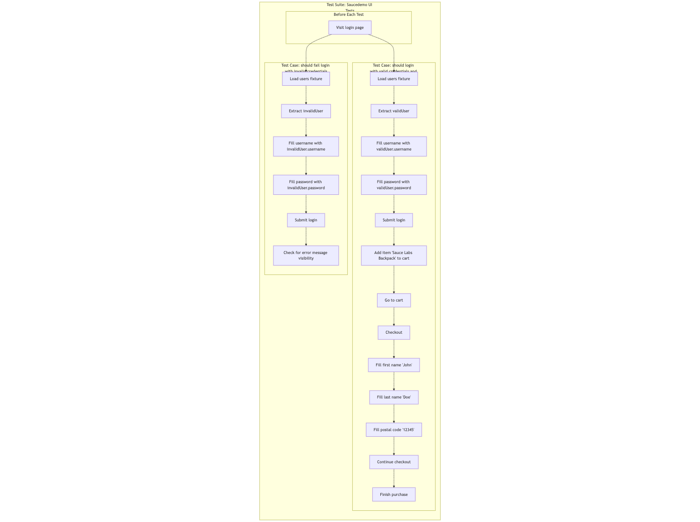 The diagram should represent the logical sequence of steps that need to be taken in each test case. The beforeEach hook contains steps to be taken before each test case. Please follow the following structure: