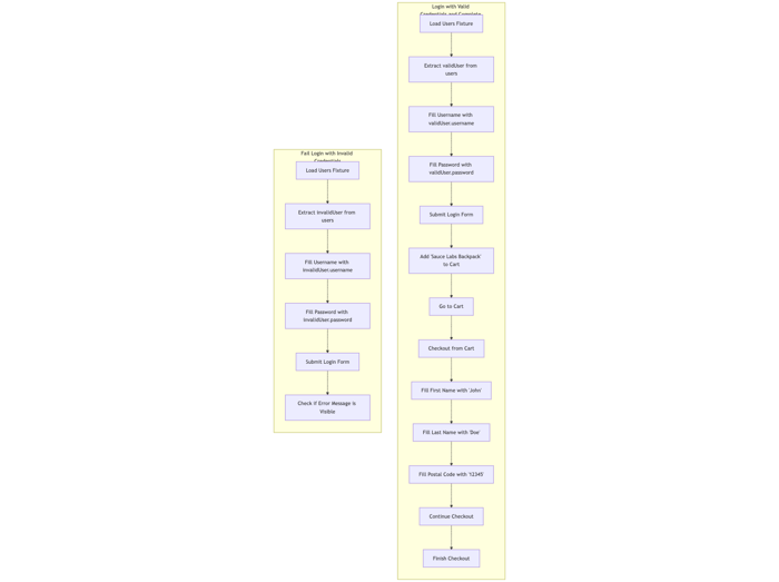 it(‘should login with valid credentials and complete a purchase’, () => {