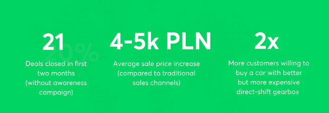 - the average sale price at VW Home is now 4-5k PLN higher than the average price in traditional sales channels;