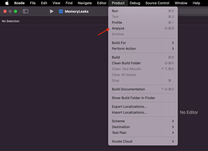 The Analyze tool is a function in Xcode for statically analyzing code after potential memory leaks. Once the analysis has finished running, the developer is provided with a list of suspicious places in the code.