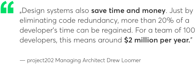 “Instead of two designers looking at the same thing and unintentionally creating totally different solutions, design systems provide a shared platform to create, collaborate, and build a deliberate outcome.”