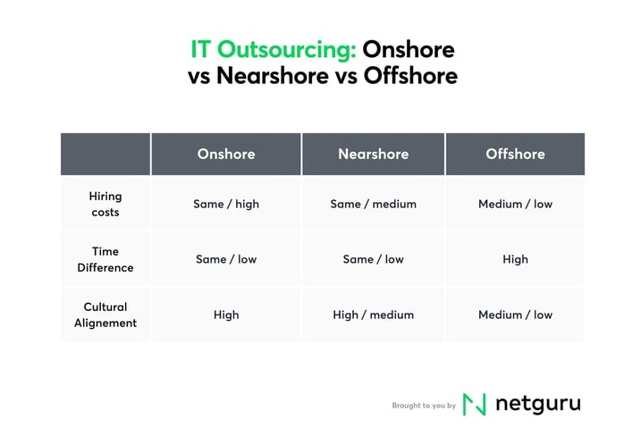 - Choose the right outsourcing model (onshore, nearshore, or offshore).