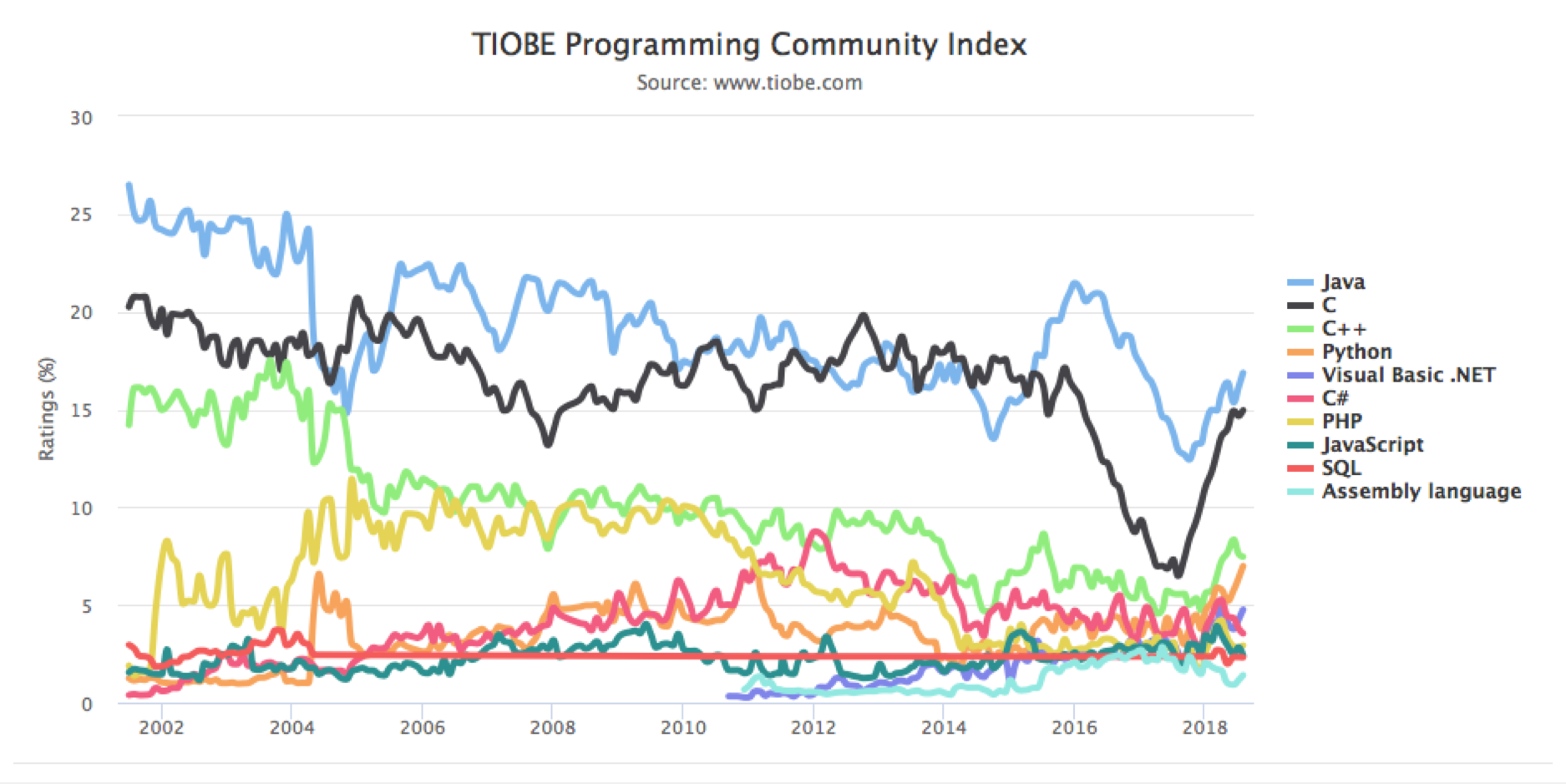 We can see from the TIOBE Index that Python is one of the most in-demand languages. The popularity is echoed in the job market. According to Stack Overflow Developer Survey in which 90 000 developers took part, Python is the fourth most popular technology, overtaken only by JavaScript, HTML/CSS and SQL. This year, Python surpassed Java.