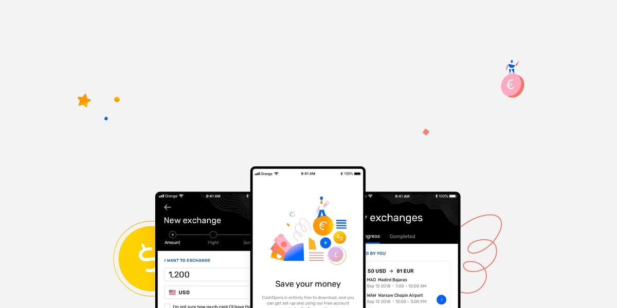 Cash Opera came to Netguru with an appealing concept that required UX consulting and a complex redesign. They wanted their app to be easy to use in the crowded, busy setting of the airport. As the app’s main goal is to make currency exchange more convenient and faster, the UX and UI design had to reflect this. Additionally, the app needs to be pleasant to interact with, and inspire trust in users.