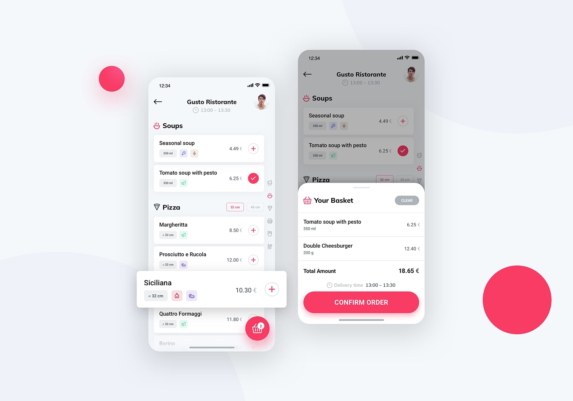 Using the Flutter framework, our team has created a beautiful and user-friendly app for food ordering and delivery. Users can check the list of restaurants and their menus along with the ingredients list of each dish. They can also search for restaurants and filter them by the hours they serve meals.