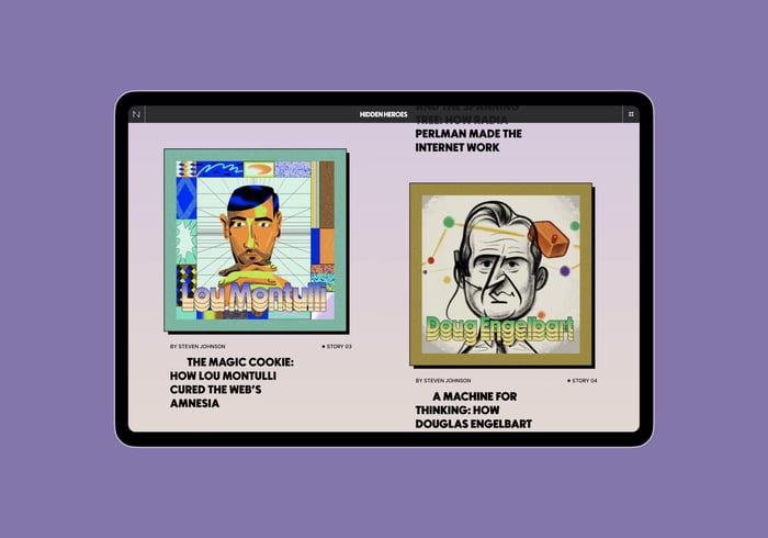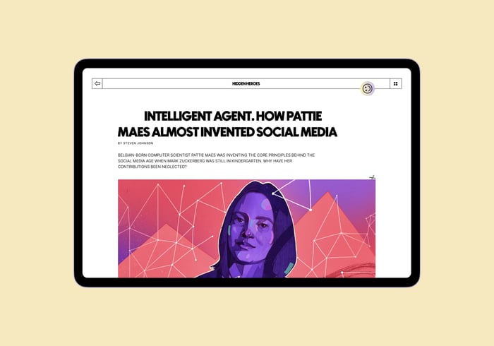 We settled on eight heroes to highlight. Choosing them, we focused on people whose work is actually still alive and critical in the digital world today, but whose names and contributions have been largely forgotten. People such as Pattie Maes, the people-focused technologist who built the progenitor of our current social networks, or Lou Montulli, who invented cookies in one week and incidentally changed the ad business forever.
