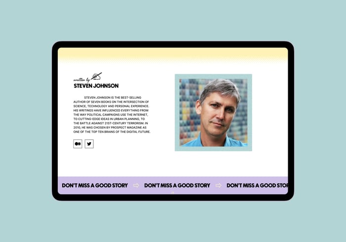 Our goal was to reach international audiences and offer touching, compendious stories based on deep research and supplemented by broad knowledge. So, we partnered with Steven Johnson, who over the past decades has been trying to understand and explain where the innovation and progress in society comes from.