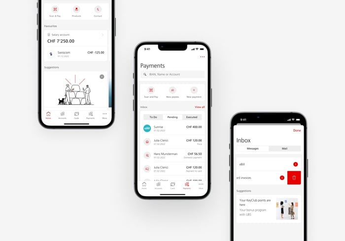 UBS develops a personal mobile banking application dedicated to their private clients. It allows them to make secure and convenient financial transactions such as paying bills, scanning payment slips, and trading assets, all on their smartphone or tablet.
