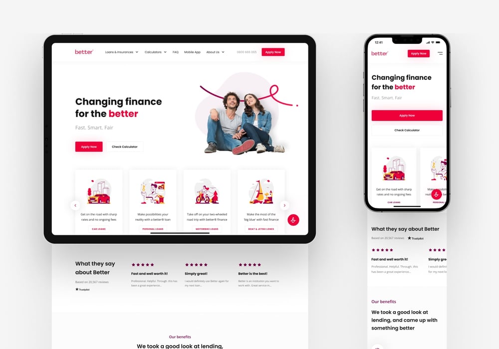 Better is a loan and insurance company based in New Zealand. The client engaged Netguru to design a simple landing page. Based on our initial sessions, the scope was extended to expand the website, improve the UX, rethink the application process, update the UI, and add illustrations.