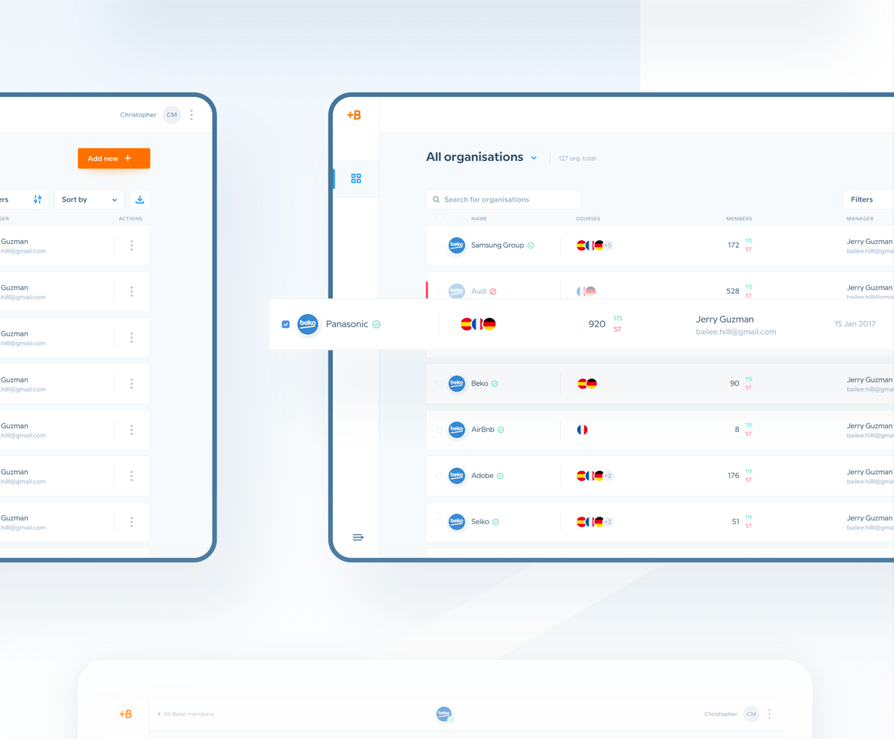 We delivered a dedicated module integrated with Babbel’s core platform, enabling enterprise account management and scalable user administration. Today, the solution supports teams at companies like Hyundai, Paramount, N26, Bacardi, and Acer.