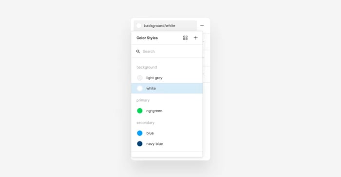 The “forward slash” naming convention for grouping also works great here. Example: background/light grey, background/white blue