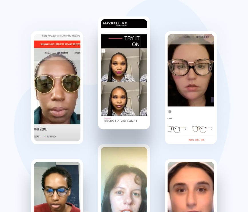 Any brand can implement virtual try-ons as long as it makes business sense. Consumers are starting to expect this experience from online retailers, so it’s proliferating across the ecommerce ecosystem. Many brands in various industries have integrated virtual try-on technology into their customer experience. The capability is most common in the fashion, beauty, and eyewear industries. Renowned brands offering virtual try-ons include: